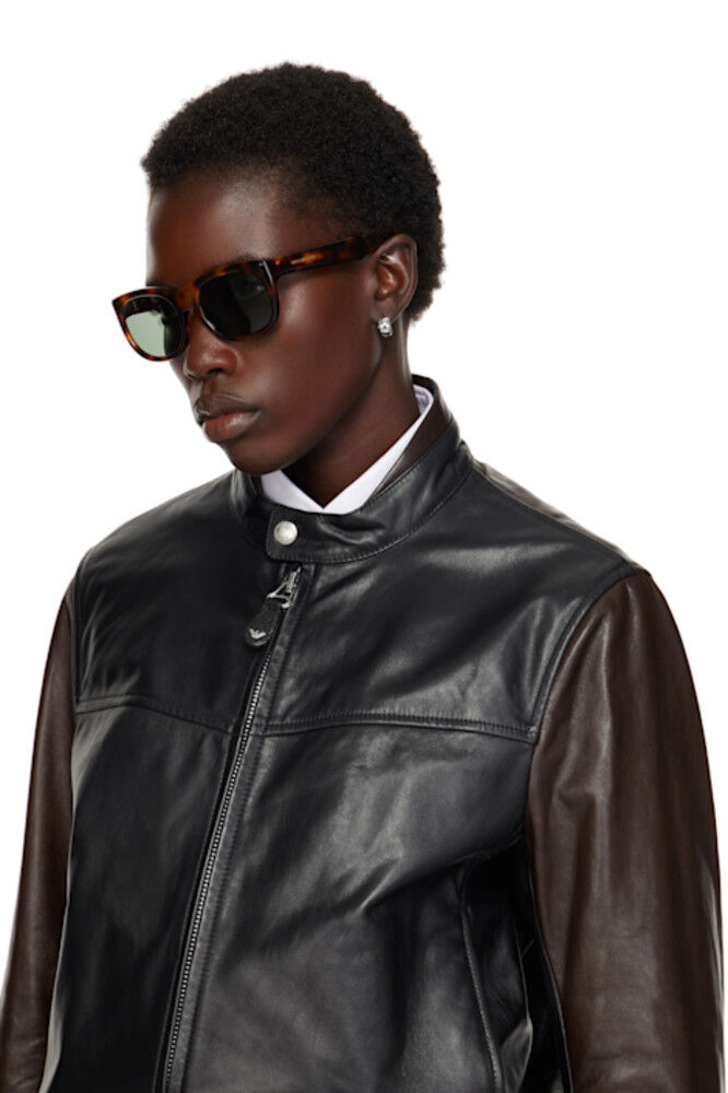 Солнцезащитные очки в овальной черепаховой оправе из ацетата коричневого цвета.