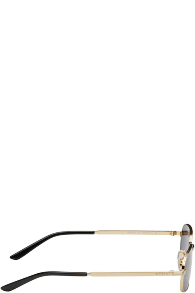 Солнцезащитные очки в прямоугольной металлической оправе золотистого оттенка.