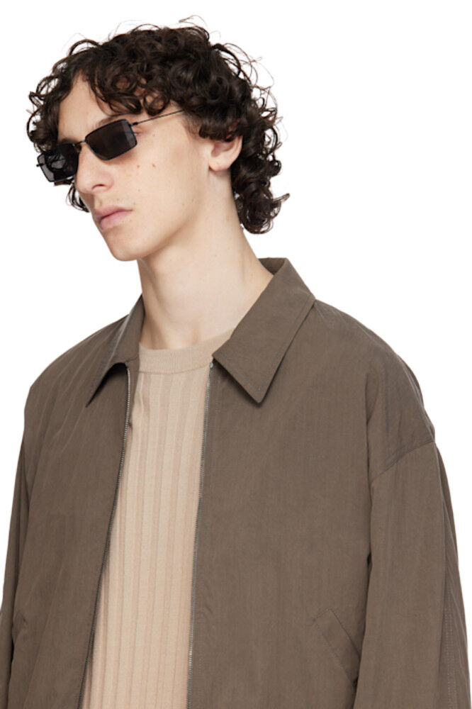 Солнцезащитные очки в прямоугольной металлической оправе ручной работы черного цвета.