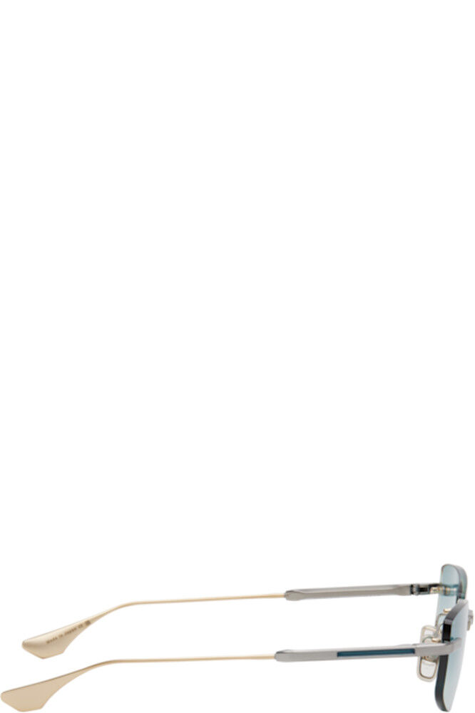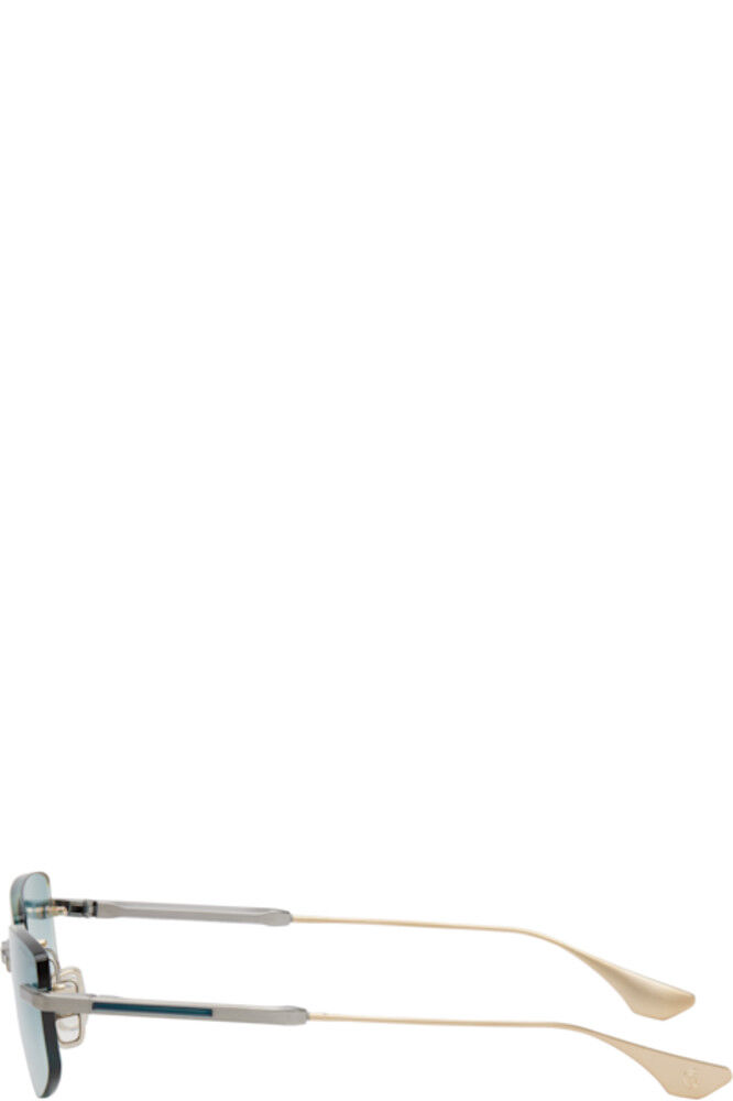 Солнцезащитные очки в титановой оправе прямоугольной формы без оправы, выполненные вручную в оттенках оружейной стали и золота. · Антибликовые линзы с синим градиентом · 100% защита от UVA/UVB-излучения · Логотип, выгравированный на линзе · Регулируемые силиконовые носоупоры · Рифленые эмалевые детали на заушниках · Вставка с логотипом на кончике заушника · В комплект входит футляр · Размер: 56,15 143