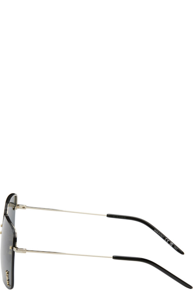 Солнцезащитные очки квадратной формы без оправы в металлической оправе золотистого оттенка.