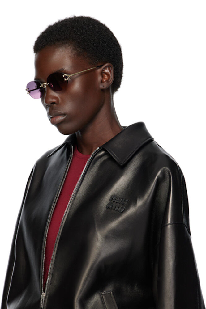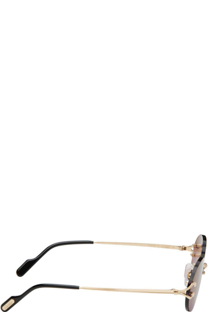 Солнцезащитные очки овальной формы с металлической оправой без оправы золотистого оттенка. · Фиолетовые линзы · Логотип, выгравированный на линзе · 100% защита от UVA/UVB-излучения, категория 3 · Регулируемые резиновые носоупоры · Фурнитура с логотипом на заушниках · Пластинка с логотипом на черных ацетатных кончиках заушников · В комплект входит футляр · Размер: 55,18 140 Входит в коллекцию Signature C de Cartier.