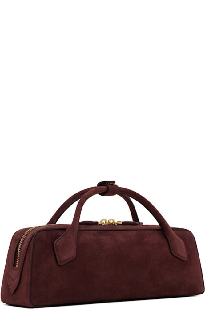 Сумка из козьей замши с верхней ручкой в бордовом цвете.