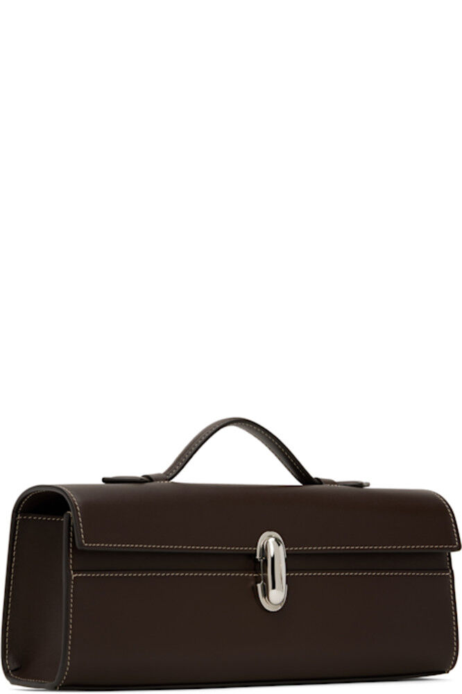 Сумка с верхней ручкой из полированной телячьей кожи коричневого цвета.