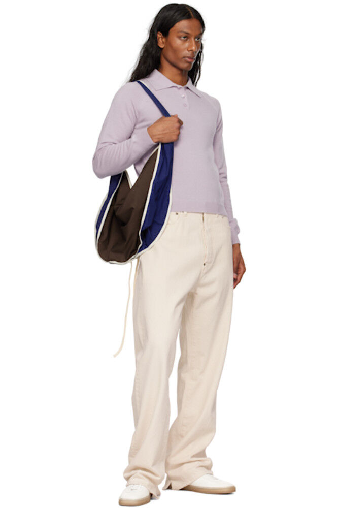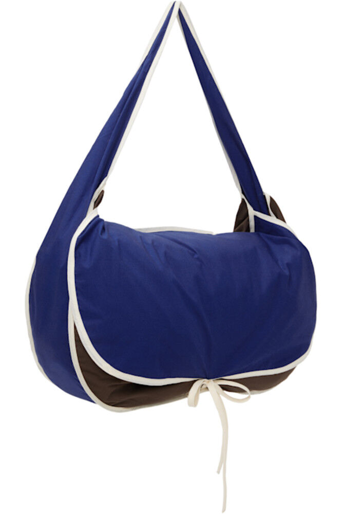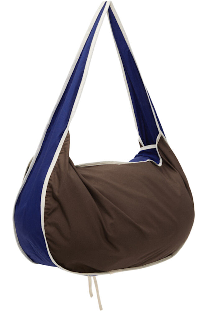 Сумка-мессенджер из хлопкового поплина синего, коричневого и кремового цветов.