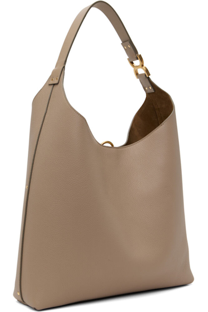 Сумка-тоут из зернистой телячьей кожи серо-коричневого цвета с сертификатом LWG.
