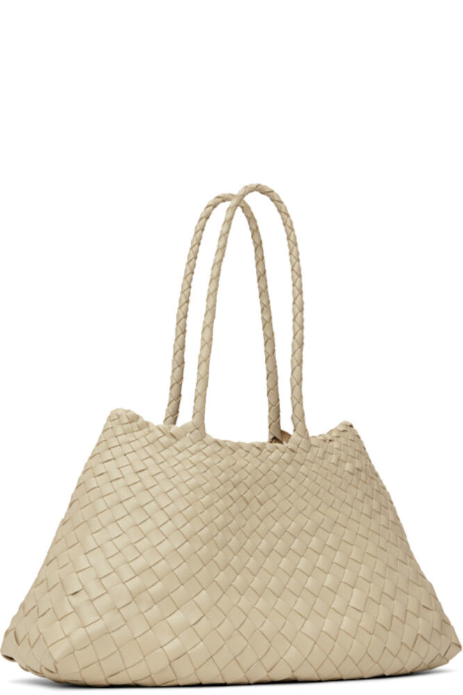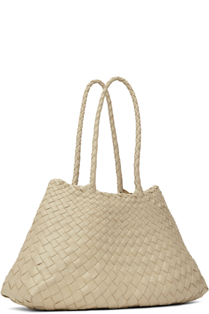 Сумка-тоут ручной работы из плетеной буйволиной кожи кремового цвета.