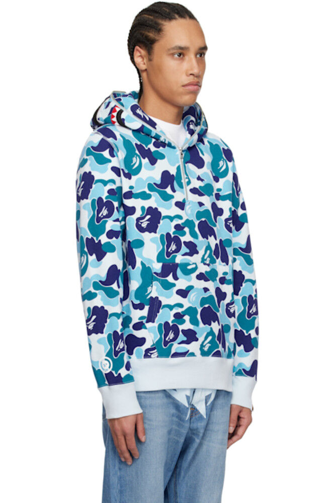 Синяя толстовка с капюшоном ABC Camo Shark на молнии BAPE