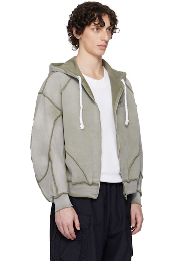 Толстовка с капюшоном из французского трикотажа. Открытые швы и выцветание по всей длине.