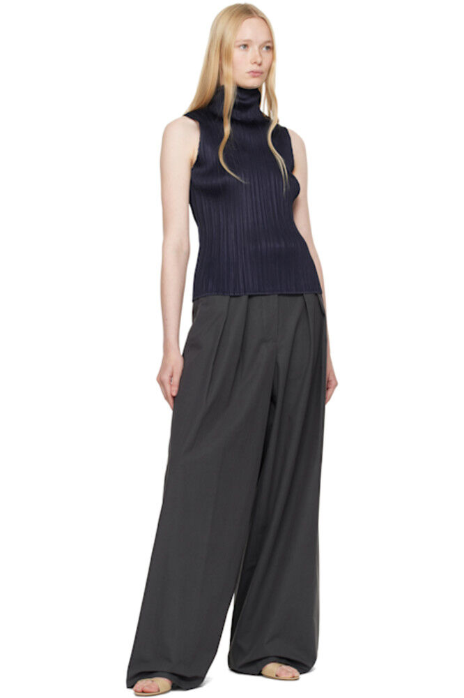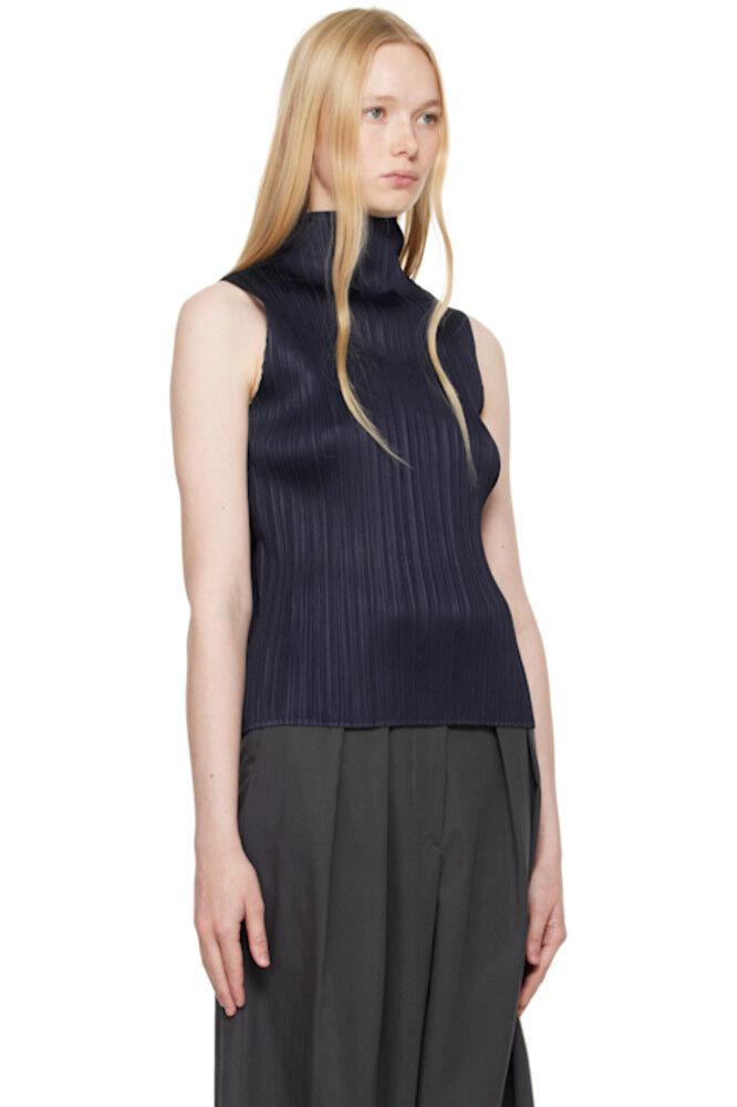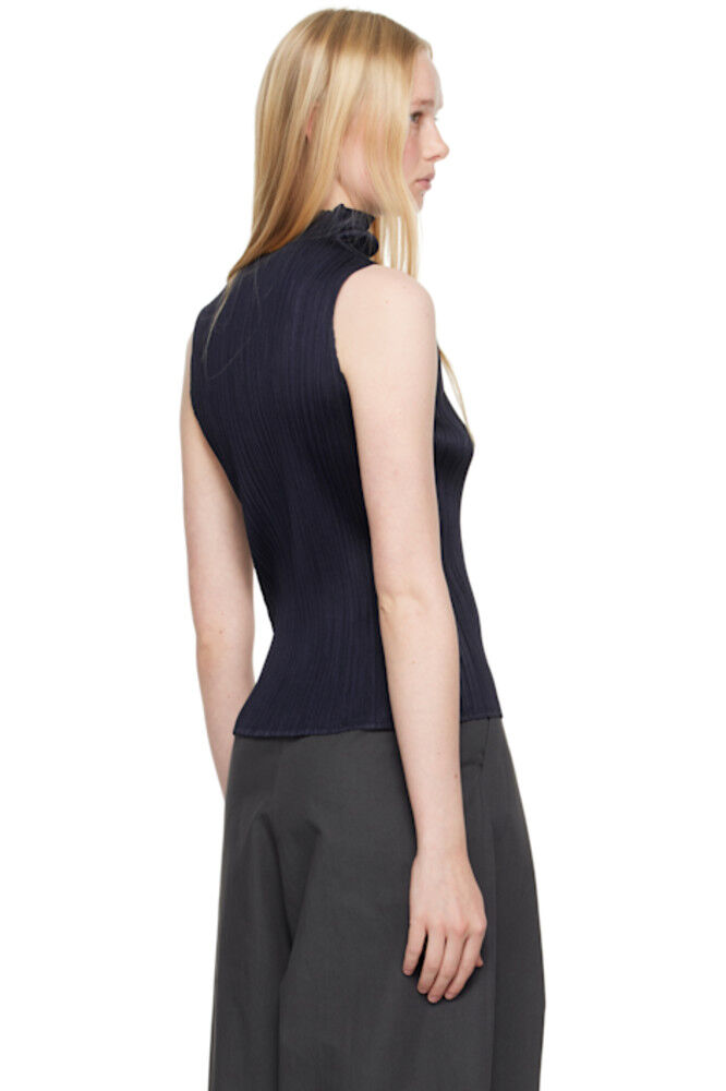 Темно-синий топ из рами с плиссировкой PLEATS PLEASE ISSEY MIYAKE