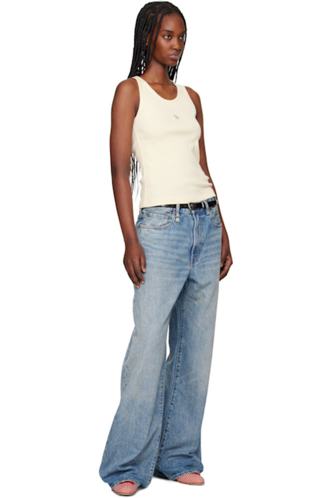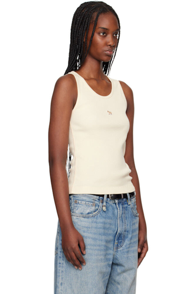 Бежевый топ с нашивками Baby Fox в рубчик Maison Kitsuné