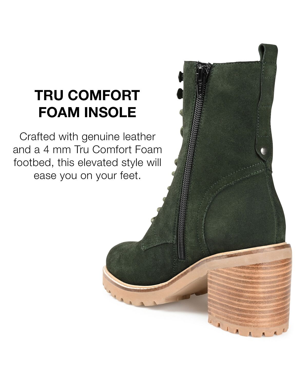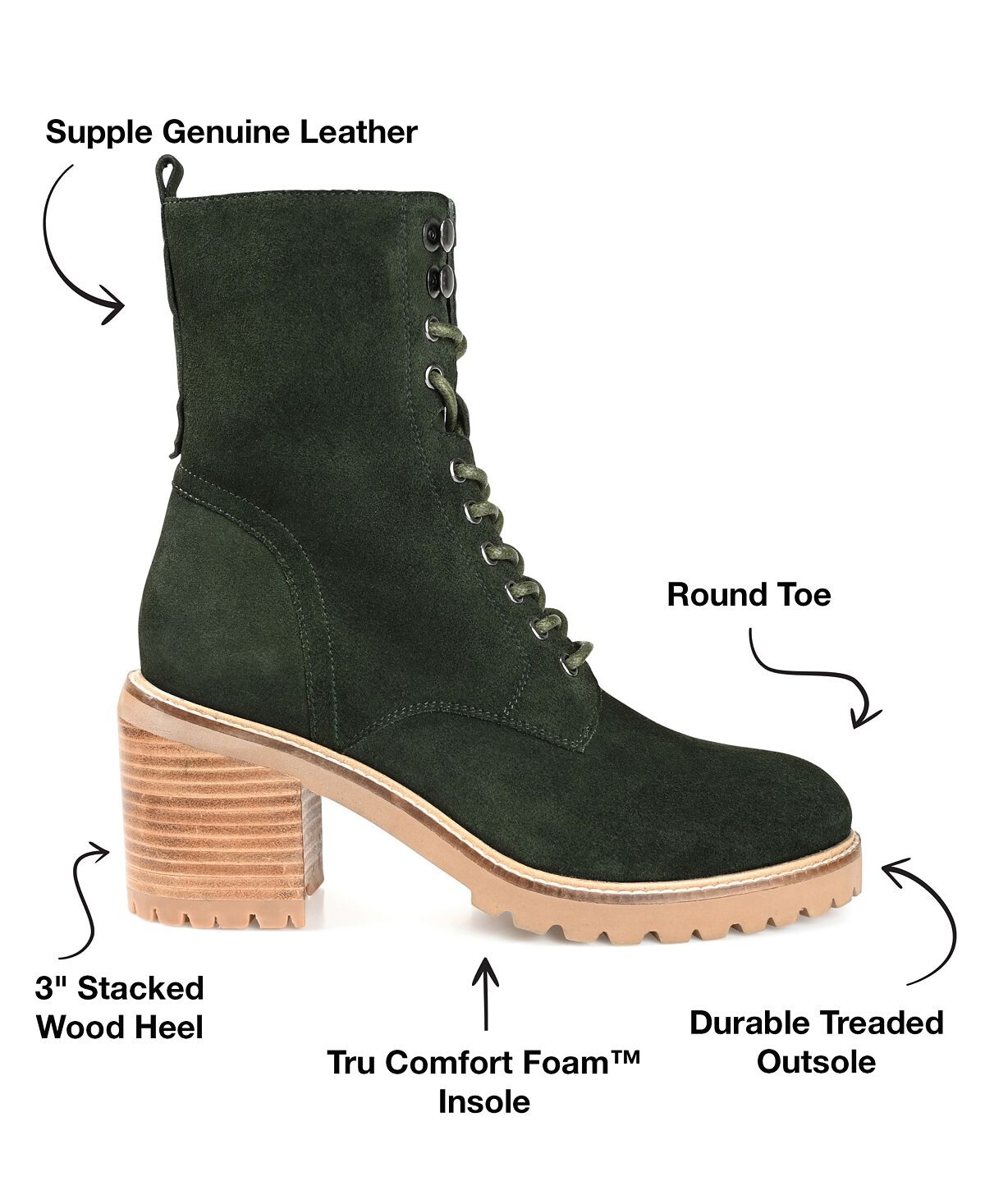 Прогуляйтесь по воспоминаниям в этих боевых ботинках в стиле ретро. Модель Malle от Journee Signature изготовлена ​​из качественной натуральной кожи и имеет очень мягкую стельку из пеноматериала толщиной 4 мм. Классическая застежка на шнуровке обеспечивает посадку, а наборный блочный каблук добавляет образу высоты.