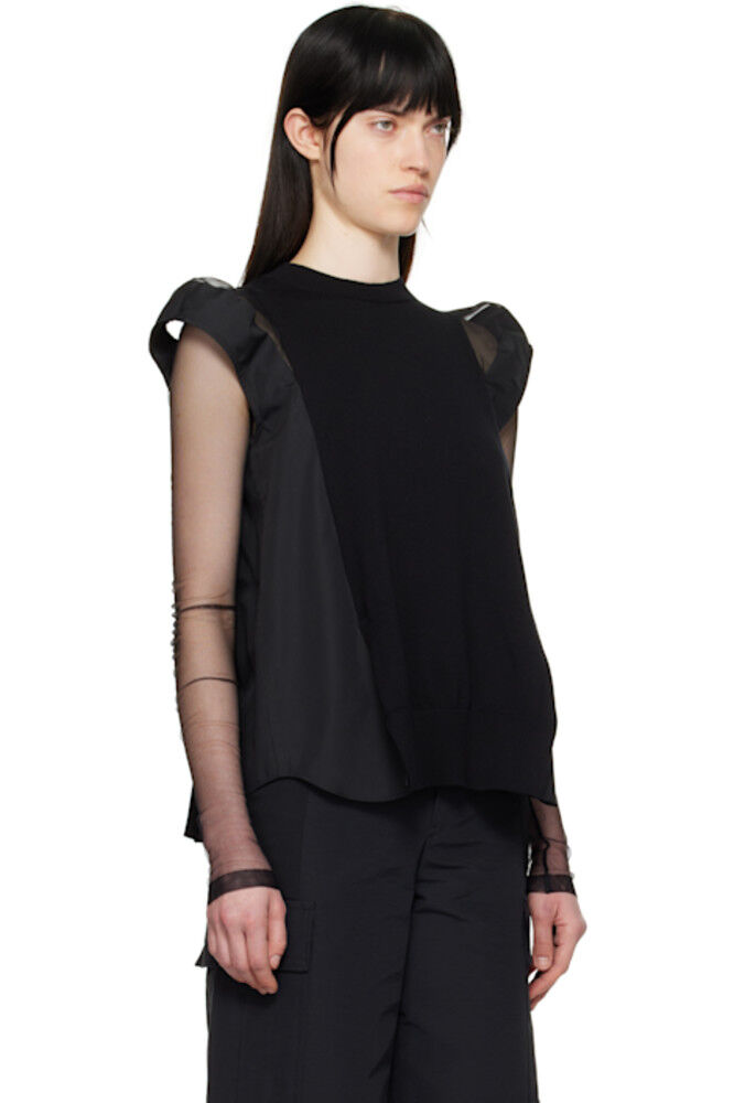 Черный поплиновый и вязаный свитер sacai 37 180₽