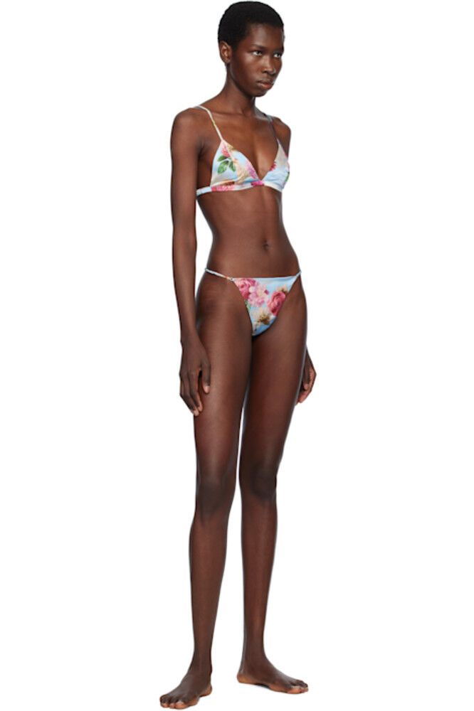 Трусики-стринги из эластичного шелкового атласа. Цветочный рисунок напечатан по всей длине.