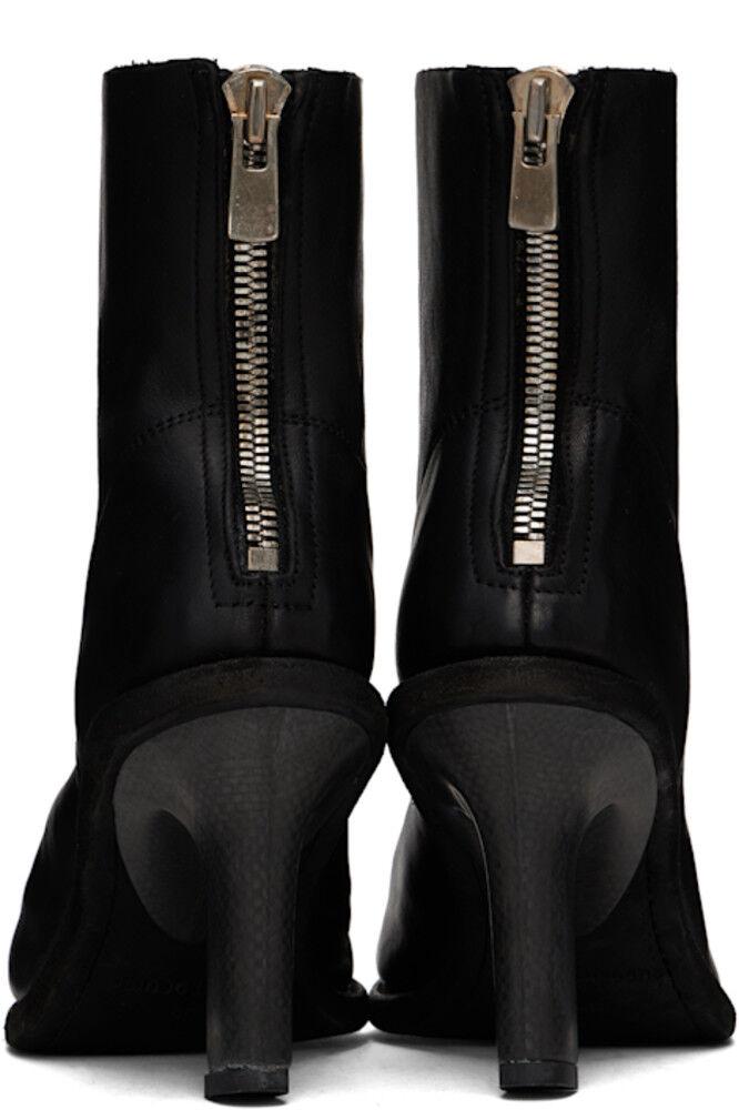 Туфли из полированной телячьей кожи черного цвета высотой до щиколотки.