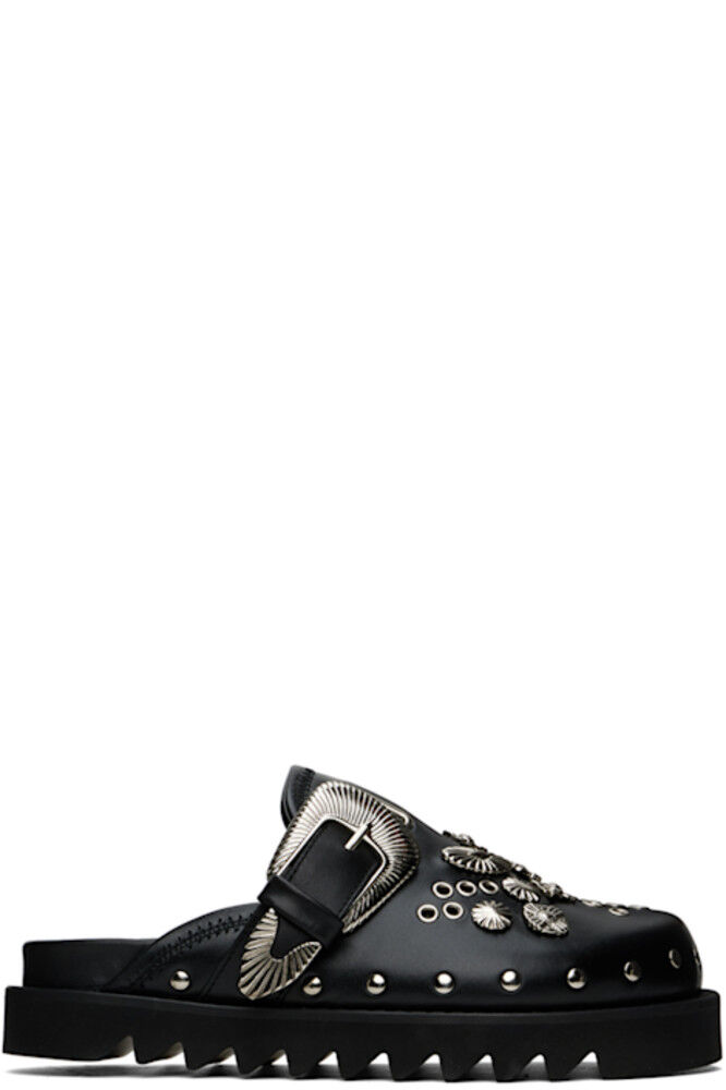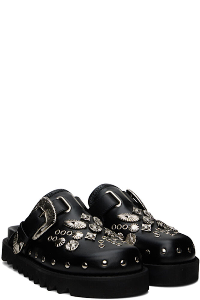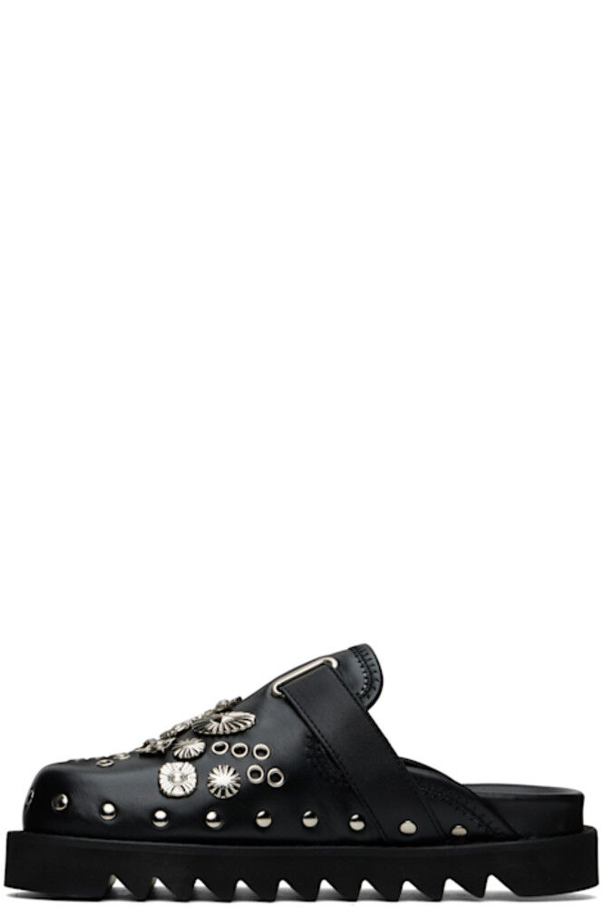 Эксклюзивные черные туфли-сабо с металлическими люверсами от SSENSE Toga Pulla
