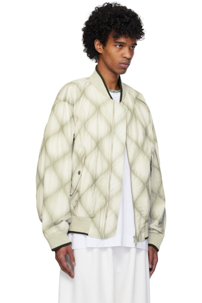 Куртка-бомбер из белой и серой утиной парусины Dries Van Noten