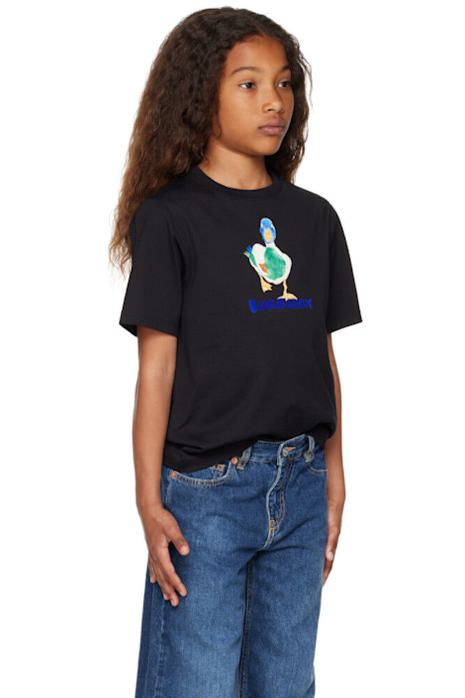 Футболка из хлопкового джерси. · Круглый вырез горловины из рубчика · Печатный рисунок и флокированный логотип спереди · Машинная стирка Рост модели: 51,97 дюйма / 132 см, размер 8Y. Размер Burberry: рост ребенка 3Y: 38,5 дюйма / 98 см 4Y: 41 дюйм / 104 см 6Y: 45,5 дюйма / 115,5 см 8Y: 50,4 дюйма / 128 см 10Y: 55,1 дюйма / 140 см 12Y: 59,9 дюйма / 152 см 14Y: 64,6 дюйма / 164 см