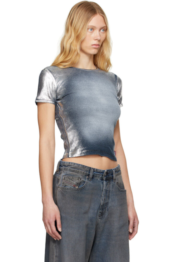 Футболка из эластичного хлопкового трикотажа в рубчик. Металлизированная потертость, окрашенная распылением.