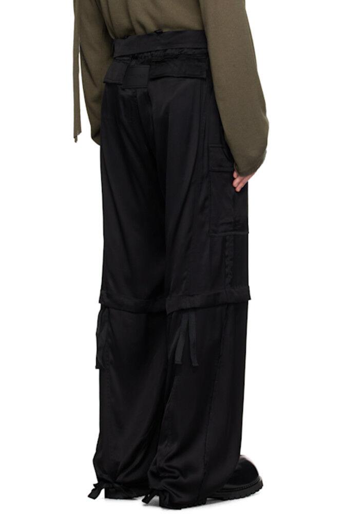 Широкие брюки-карго из эластичного атласа с добавлением вискозы. Необработанные края по всей длине.