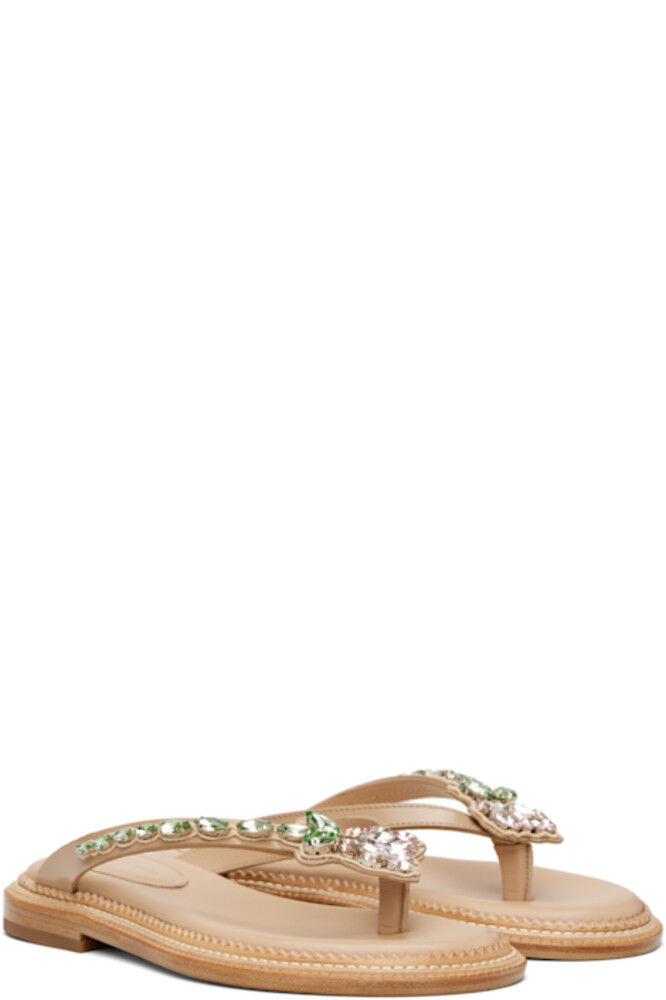 Бежевые шлепанцы с цветочным узором Simone Rocha