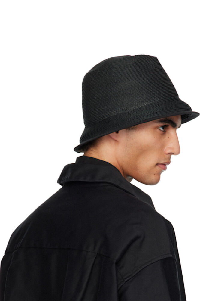 Шляпа из плетеной бумаги черного цвета.