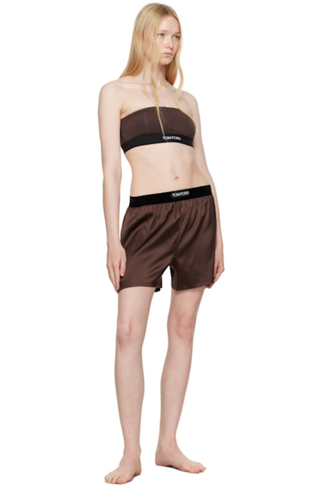 Коричневые атласные шорты-боксеры из эластичного шелка TOM FORD