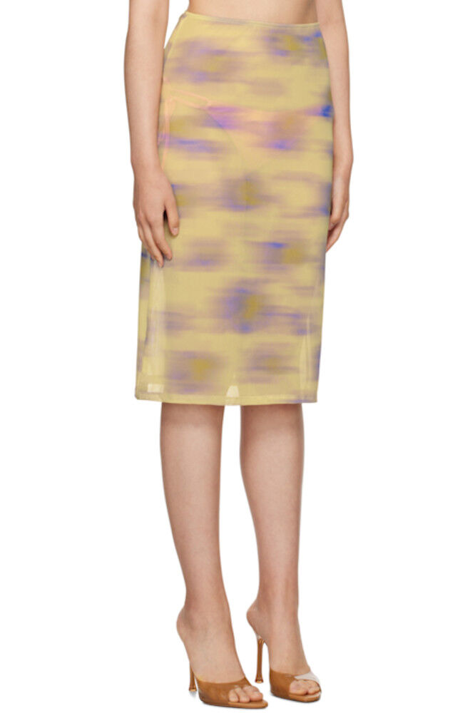 Юбка из полупрозрачной эластичной полиэстеровой сетки ручной работы. Графический рисунок напечатан по всей длине.