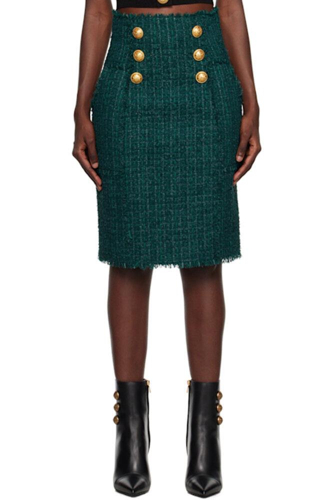 Юбка миди с зеленой бахромой Balmain 50 101₽