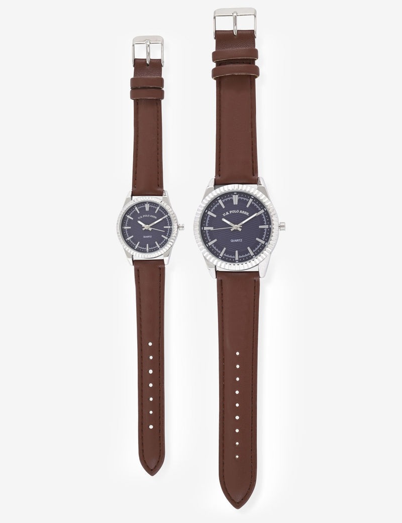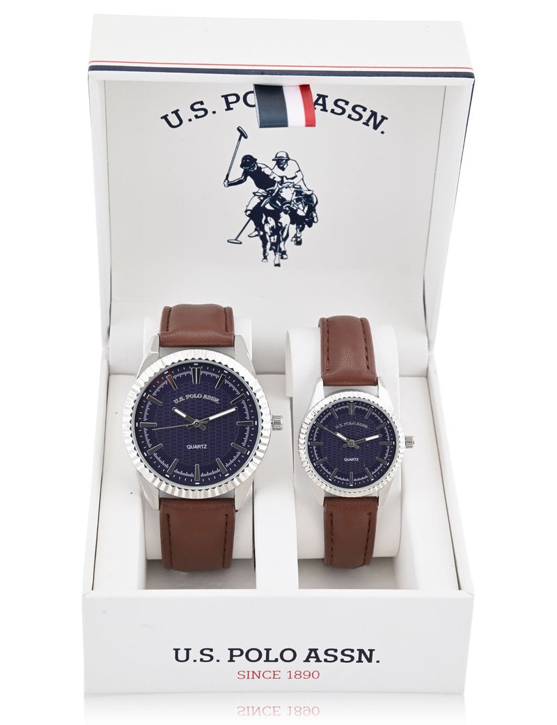 Комплект часов US Polo Assn для Него и для Нее на коричневом ремешке