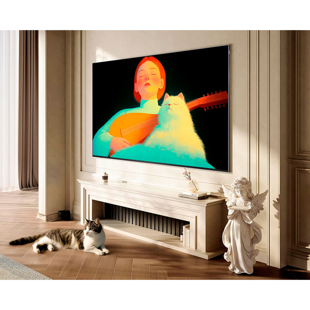 Модель крепится с помощью ультратонких магнитных опор, расстояние от стены после установки составляет всего 3 мм, что обеспечивает эффект “прилипания к стене”. Разрешение экрана 4K (3840×2160) обеспечивает четкость, охват цветовой гаммы 95% DCI-P3 - яркие и точные цвета, создавая реалистичное изображение с эффектом полного погружения.