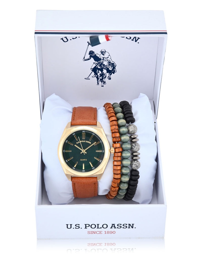 Набор мужских коричневых часов с браслетом.