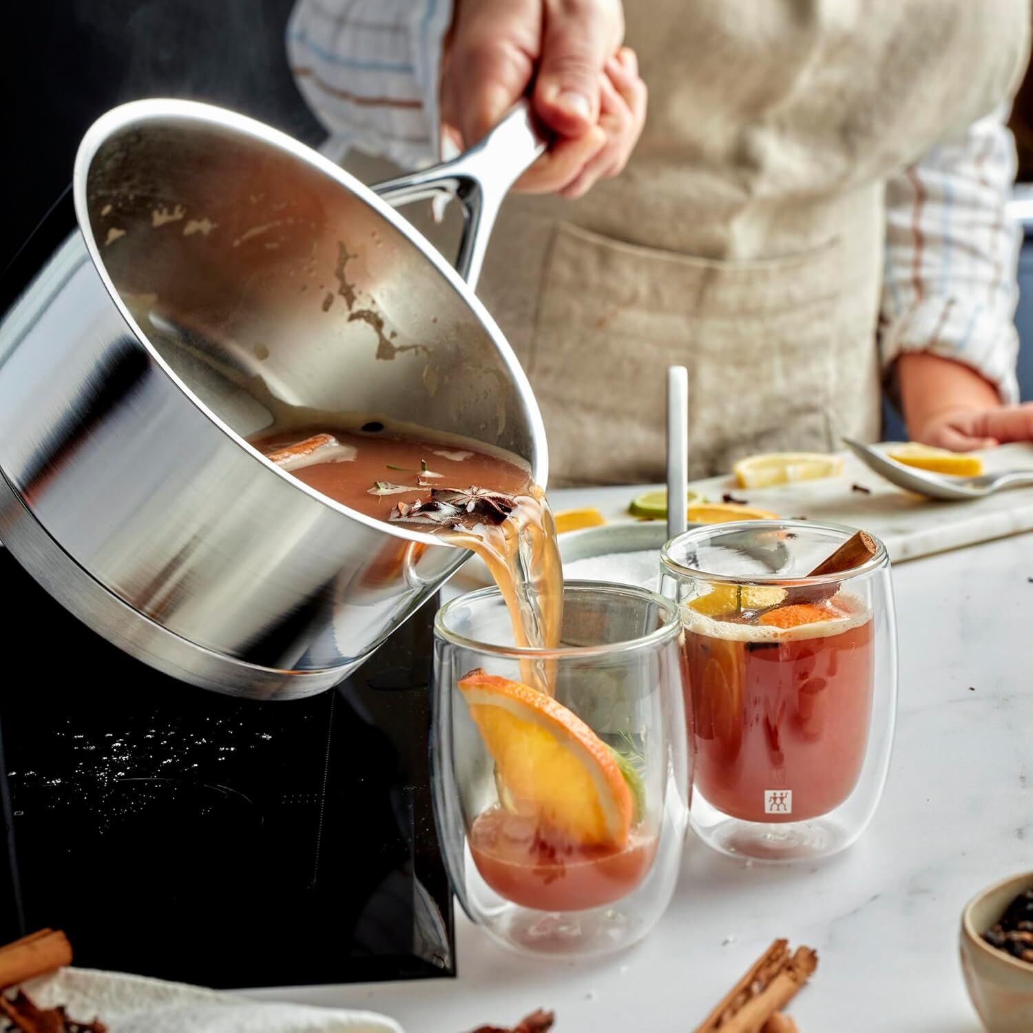 Можно мыть в посудомоечной машине; использовать в духовке при температуре до 600 градусов по Фаренгейту; подходит для всех видов варочных панелей, включая индукционные; сделано в Бельгии