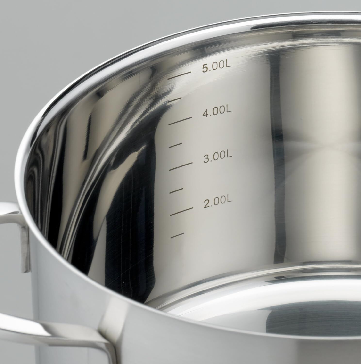 Изготовлен из высококачественной нержавеющей стали 18/8 с отделкой. Специально разработанные боковые ручки идеально вставляются друг в друга Снаружи шелковисто-матовый, внутри глянцево-полированный Энергосберегающее, особо прочное термокапсульное дно Практическая литературная шкала для простого измерения количества жидкости Емкость: 5 литров Материал: нержавеющая сталь Описание покрытия: нержавеющая сталь Тип отделки: нержавеющая сталь Безопасно ли использовать в духовке: Да Подходит для плиты: Да
