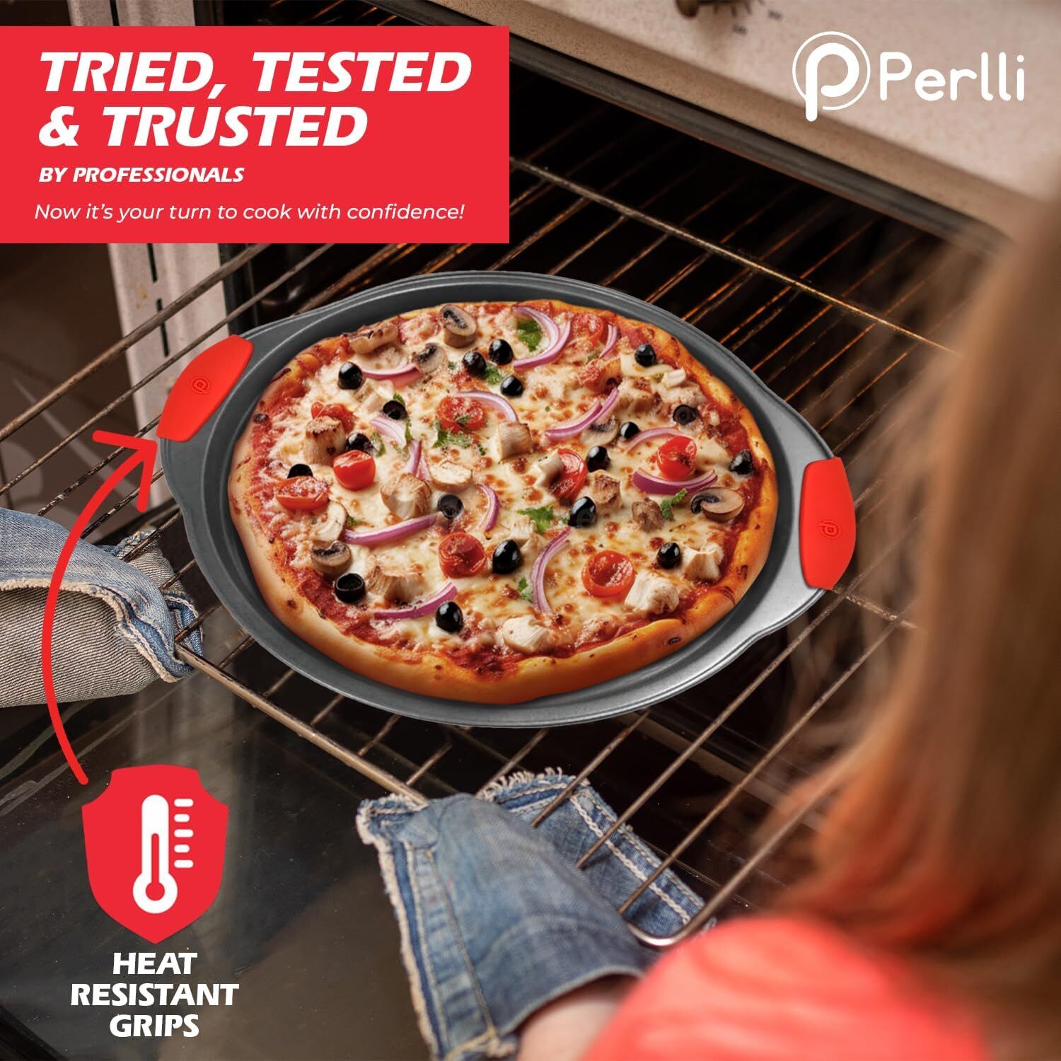 ВЫСОКОКАЧЕСТВЕННАЯ УГЛЕРОДИСТАЯ СТАЛЯ И ТЕРМОСТОЙКИЕ РУЧКИ: Изготовленные из высококачественных материалов из углеродистой стали, эти нетоксичные формы для выпечки останутся в отличном состоянии на долгие годы. Кроме того, они поставляются с термостойкими красными силиконовыми ручками для комфортного использования.