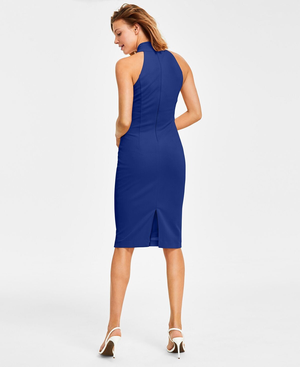 RACHEL Rachel Roy, подчеркивающая ваши изгибы элегантным силуэтом-футляром, создает изысканный образ в этом однотонном платье. Элегантная длина ниже колена дополнена шикарным перекрещенным вырезом через шею, придающим современный вид. Откажитесь от ожерелья с этим дизайном с высоким воротником и сосредоточьте свои аксессуары на эффектной серьге или привлекательном браслете. Блестящие босоножки с ремешками или туфли-лодочки с принтом станут идеальным завершением соблазнительного образа.