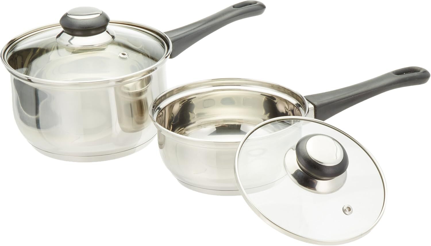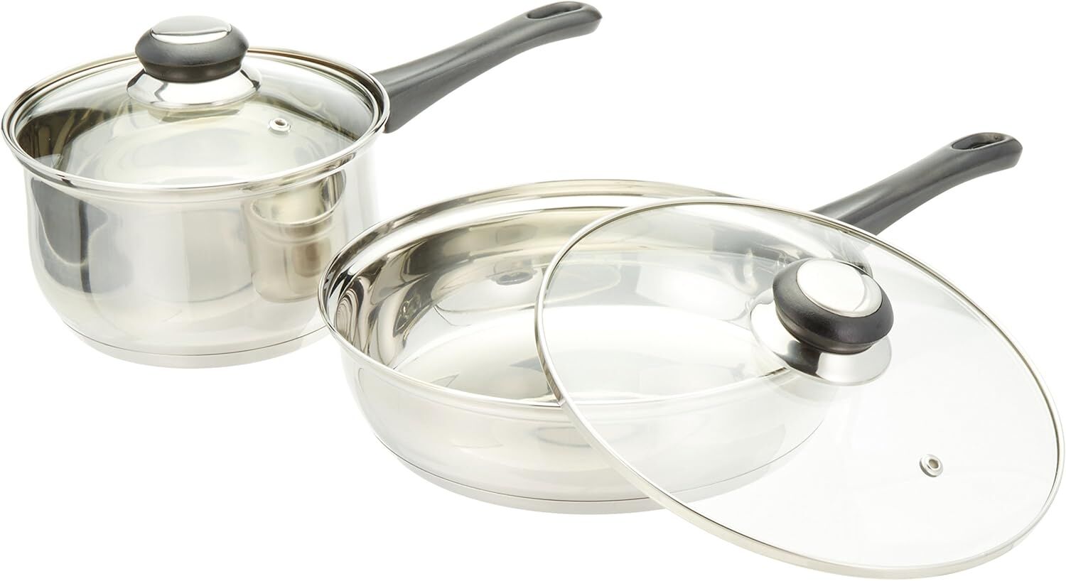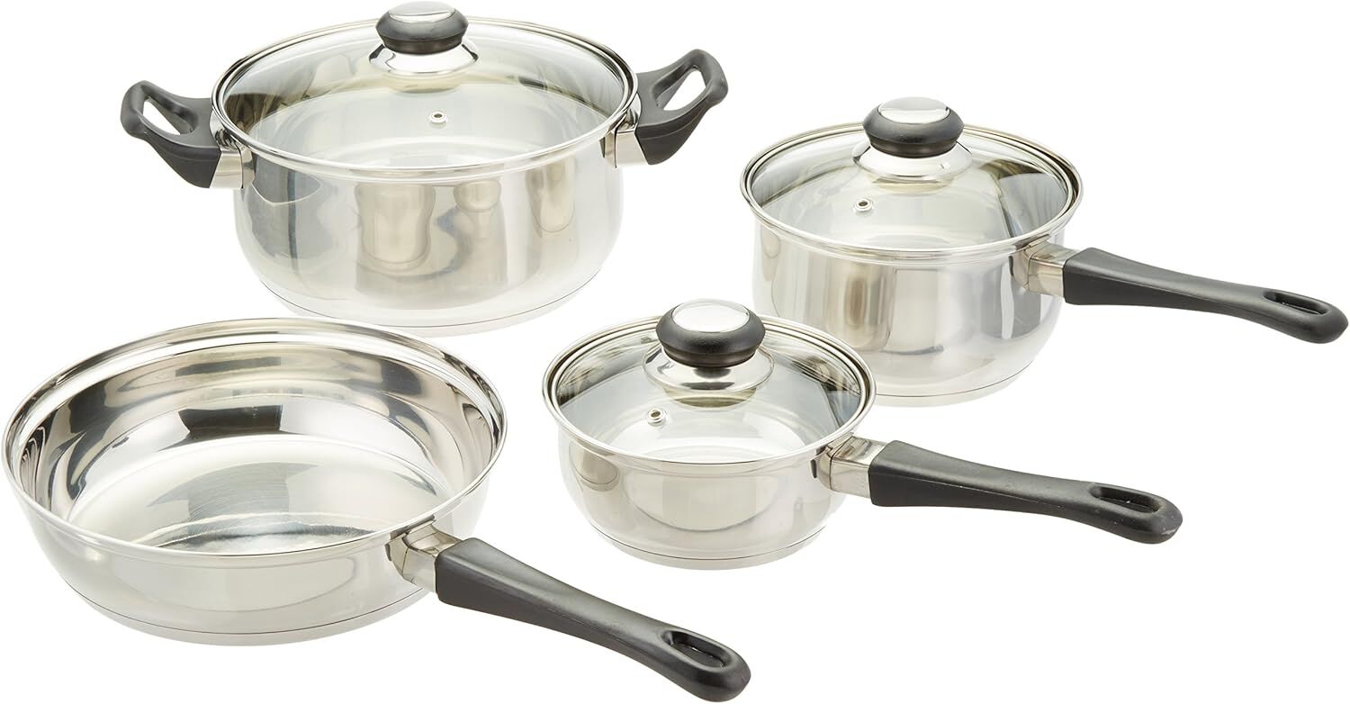 Изготовлено из нержавеющей стали, зеркальная полировка внутри и снаружи. Дно из инкапсулированного алюминия. Ручки и ручки из бакелита Stay Cool. Крышки из закаленного стекла с удобной ручкой.