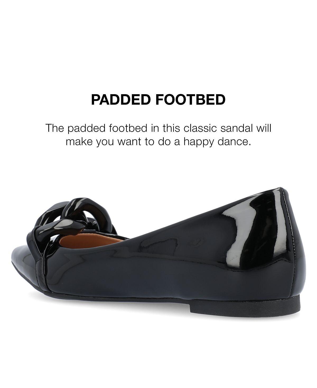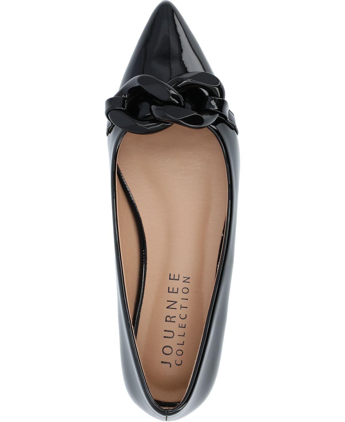 Наши балетки Clareene из коллекции Journee станут идеальным завершающим штрихом, дополняющим любой ваш образ благодаря лакированной искусственной коже и объемной цепочке из искусственной кожи в тон. В качестве бонуса их мягкая стелька позволит вам чувствовать себя комфортно при ходьбе.