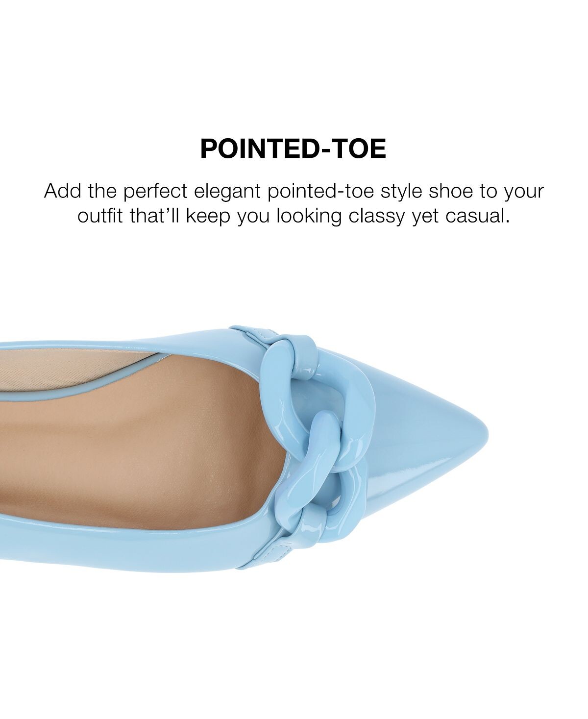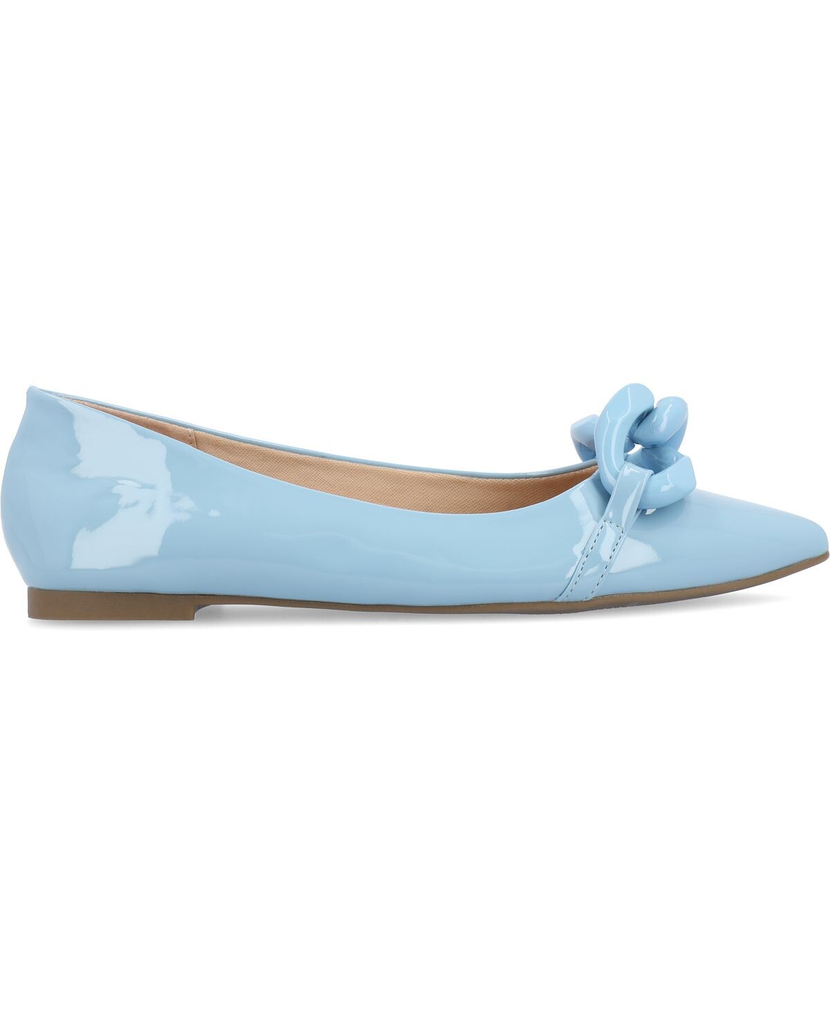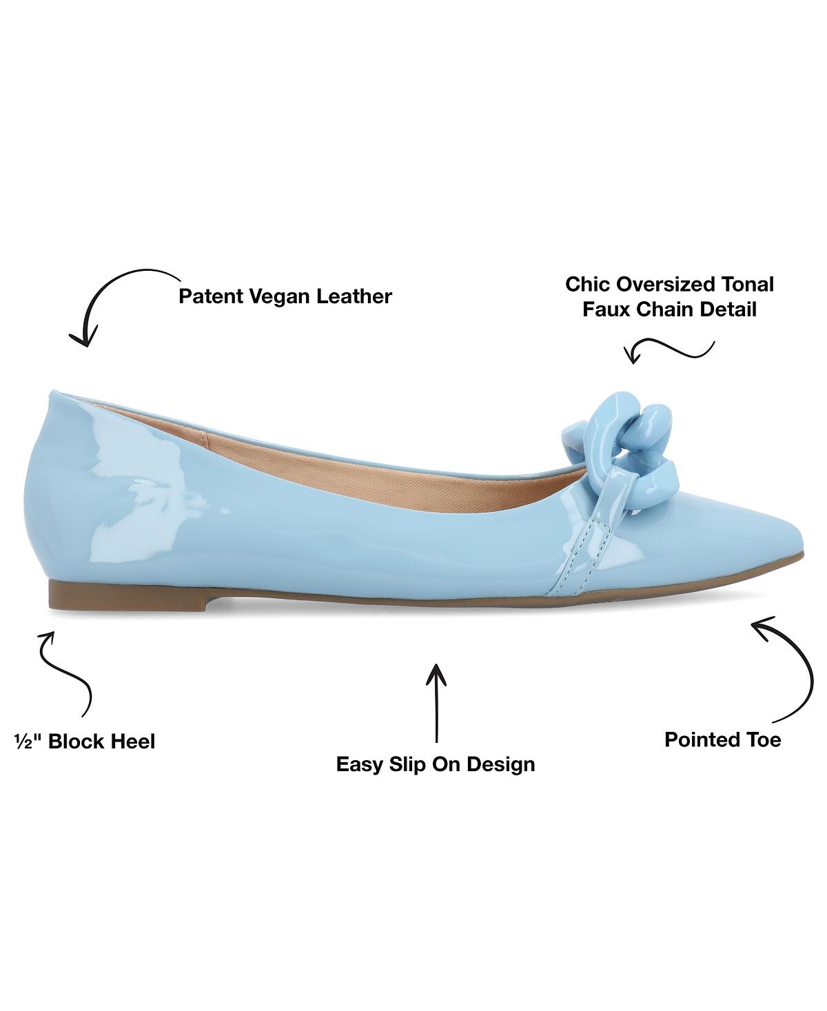 Наши балетки Clareene из коллекции Journee станут идеальным завершающим штрихом, дополняющим любой ваш образ благодаря лакированной искусственной коже и объемной цепочке из искусственной кожи в тон. В качестве бонуса их мягкая стелька позволит вам чувствовать себя комфортно при ходьбе.