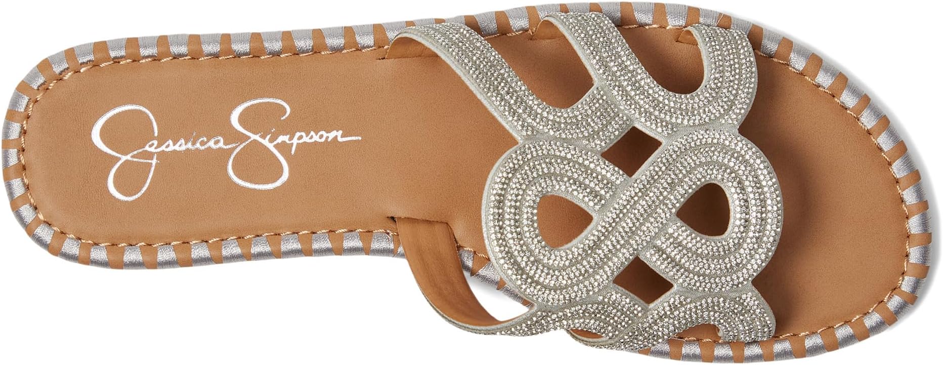 Плетеные босоножки Jessica Simpson Bria на плоской подошве - это ваш гламурный образ, необходимый для теплой погоды и незабываемых ночей. Эти слипоны с роскошным рисунком, инкрустированным кристаллами, на дышащем верху из полиэстера мгновенно подчеркнут повседневные джинсовые шорты или нарядные образы для вечеринки. Удобная подкладка из полиуретана плотно облегает ноги, а пробковая стелька обеспечивает легкую амортизацию для длительного ношения. Сандалии Bria с прочной резиновой подошвой и открытым носком, придающим блеск вашему педикюру, идеально подходят для свадебных танцев, коктейлей на крыше или прогулок по пляжу.