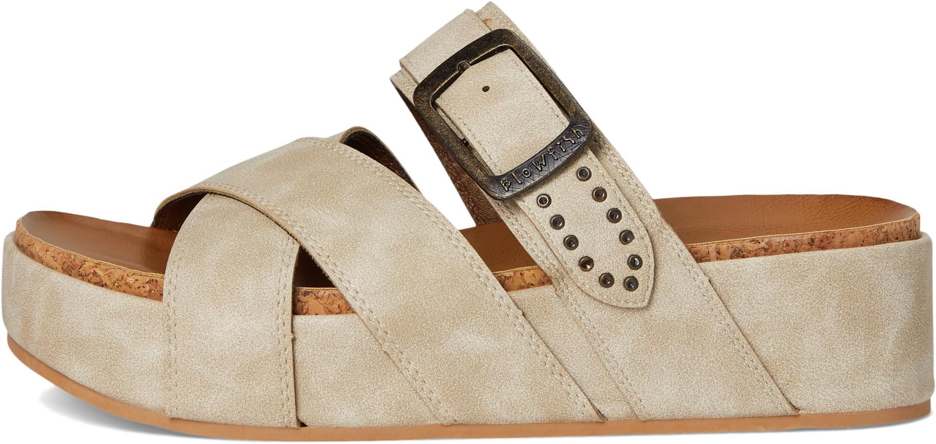Сандалии на платформе Blowfish Iris - идеальное сочетание стиля и комфорта. Верх выполнен из искусственной замши/искусственной кожи, что обеспечивает изысканную, но прочную отделку. Декоративные пряжки и заклепки придают этим сандалиям нотку элегантности и остроты, делая их универсальными для повседневных прогулок.