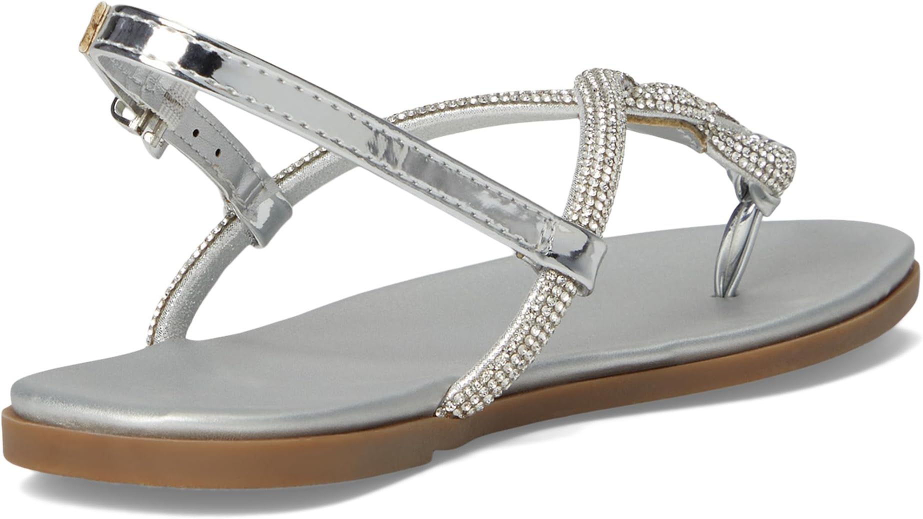 Kenneth Cole Reaction Whitney - удобные сандалии на плоской подошве с ремешком сзади для дополнительной поддержки и блестящими деталями. Туфли-лодочки в стиле ремешков с драгоценными камнями имеют верх из искусственной кожи, подкладку из искусственной кожи и стельку из искусственной кожи. Ремешок на щиколотке и застежка-пряжка обеспечивают надежную посадку.