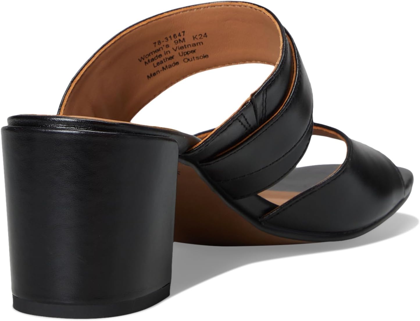 Каблук-блок из обернутой кожи.