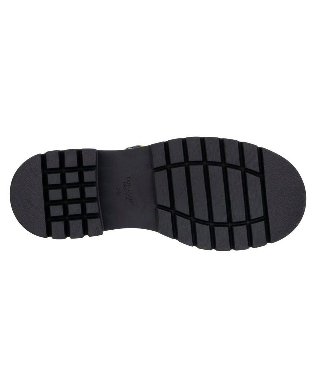 Будьте смелыми и сходите с ума в этих ботинках на рифленой подошве с яркими яркими акцентами. Яркая цветная отделка на крючках, подошве и петле для застегивания сзади этих ботильонов на шнуровке. Мягкая искусственная кожа, прочная резиновая подошва и мягкая тканевая подкладка для комфорта кожи.