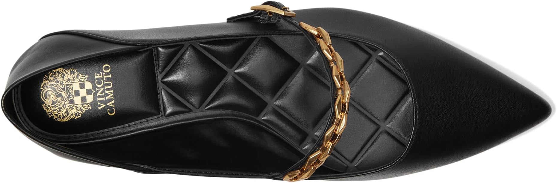 Подчеркните свой стиль, надев туфли Vince Camuto Балетки на плоской подошве от Aylin на цепочке. Эта пара сандалий с заостренным носком и складной спинкой изготовлена из кожаного верха, подкладки из полиэстера и резиновой стельки. Мягкая стелька со стегаными деталями, а также декоративный ремешок-цепочка поперек вамп с регулируемой пряжкой.