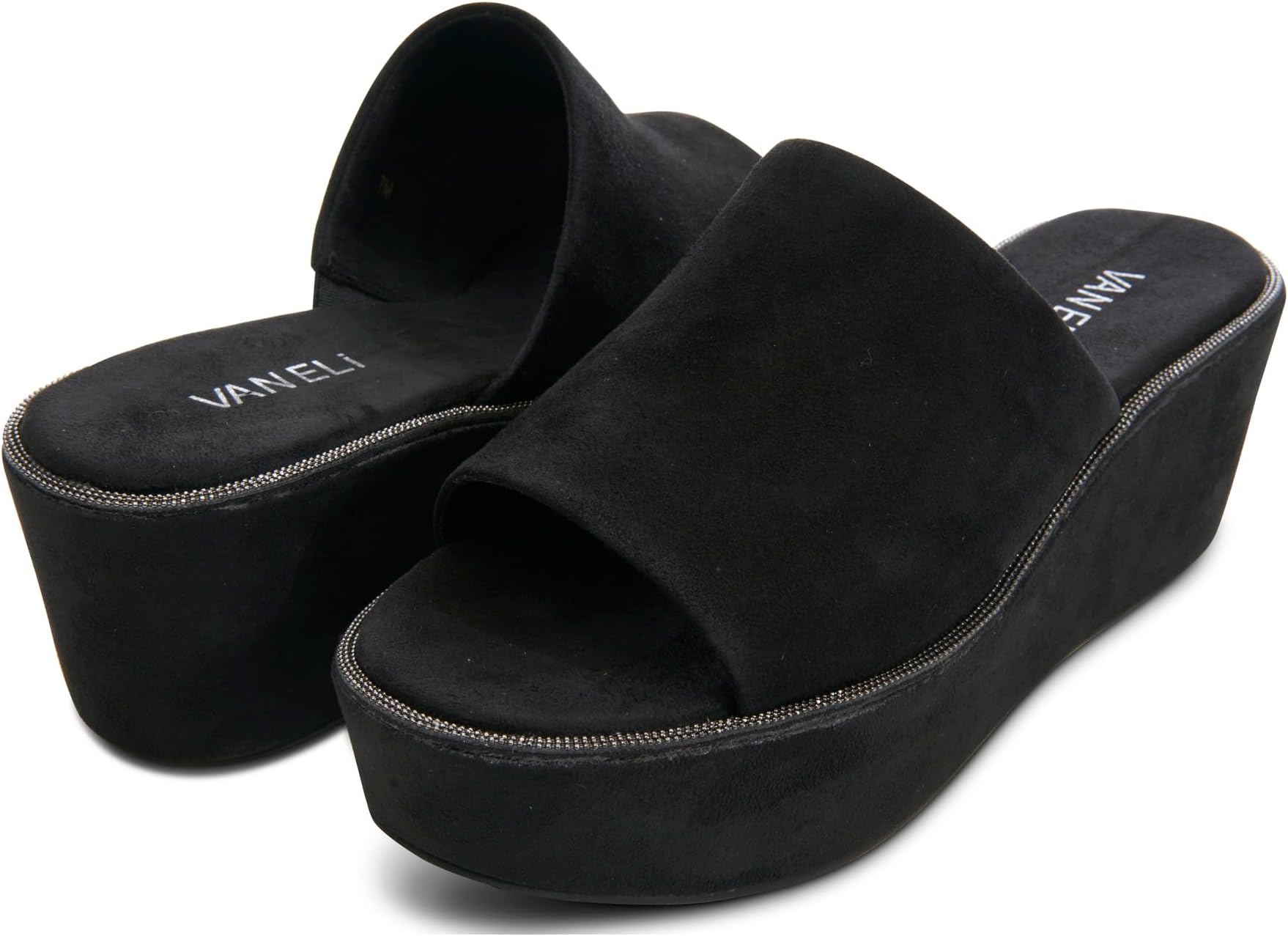 Сандалии Vaneli Hero представляют собой идеальное сочетание моды и комфорта. обувь без застежки с открытым круглым носком и каблуком на платформе для комфортного ношения. Джинсовый верх с кожаной подкладкой и стелька из искусственной кожи нежно облегают ваши ноги, создавая ощущение, что вы парите в облаках.