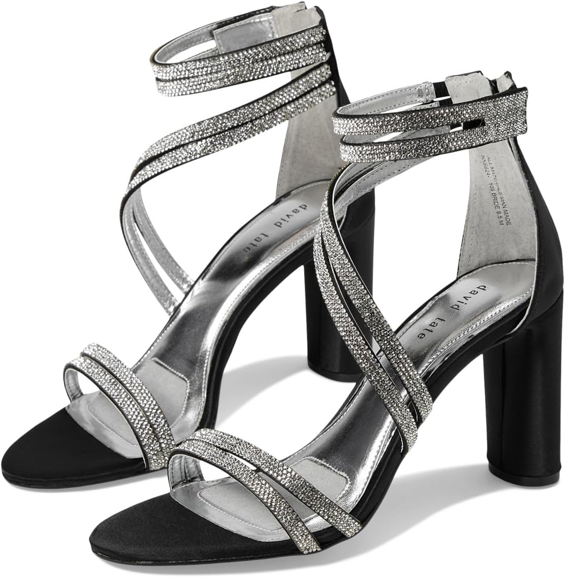 Великолепно выглядите в переливающихся босоножках David Tate для невесты. Туфли на блочном каблуке украшены сверкающими стразами и застежкой-молнией на ремешке сзади.