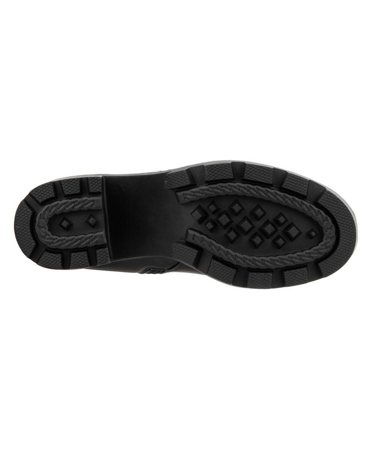 Ботинки Athena имеют подошву на платформе и массивный каблук. Модель тщательно украшена металлической цепочкой, круглым носком и боковой застежкой-молнией.