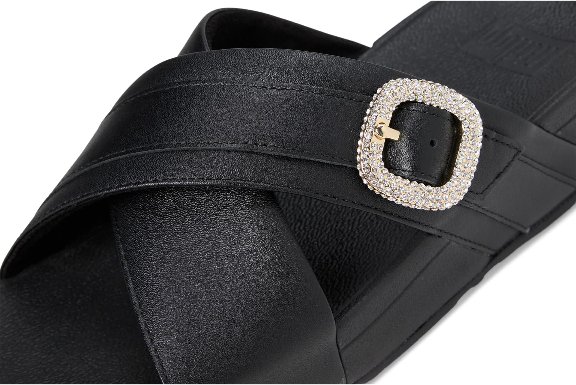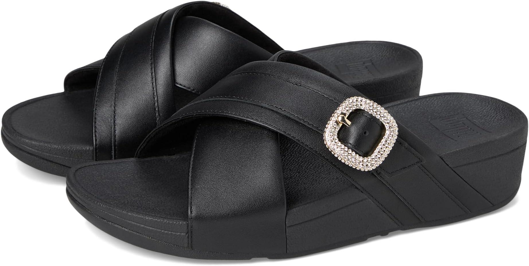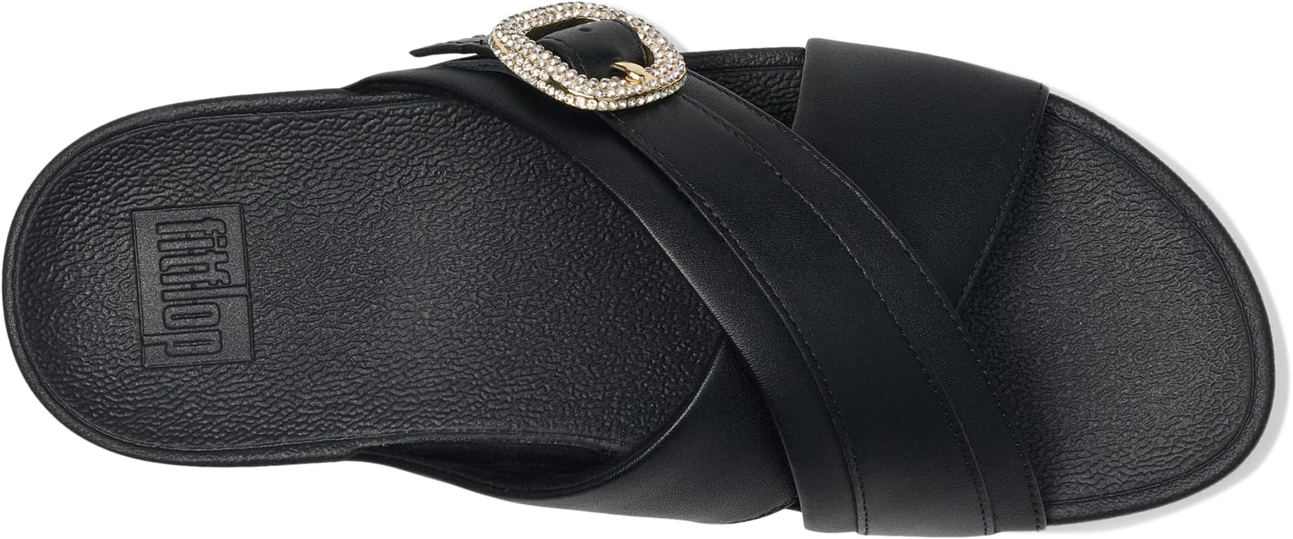 Сандалии FitFlop Lulu Crystal-Buckle Leather Cross Slides, черный