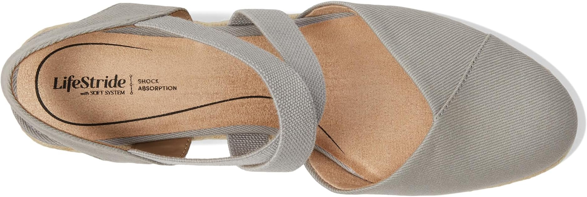 От променада до бранча: женские эспадрильи LifeStride Kimball на танкетке - идеальное сочетание стиля и комфорта. Эти туфли-слипоны с шикарным верхом из холщовой ткани и свежим миндалевидным носком - идеальное сочетание классической элегантности и современного комфорта. Благодаря перекрещивающимся эластичным ремешкам gore для легкого надевания/снимания и джутовому каблуку на танкетке они выглядят непринужденно для любого случая. Благодаря надежной технологии Soft System comfort вы можете наслаждаться подушкой, поддержкой и гибкостью в течение всего дня, а также превосходной амортизацией и распределением давления. Подкладка из частично переработанного синтетического каучука и стелька EVA повышают долговечность, в то время как подошва из полиуретана обеспечивает устойчивость.